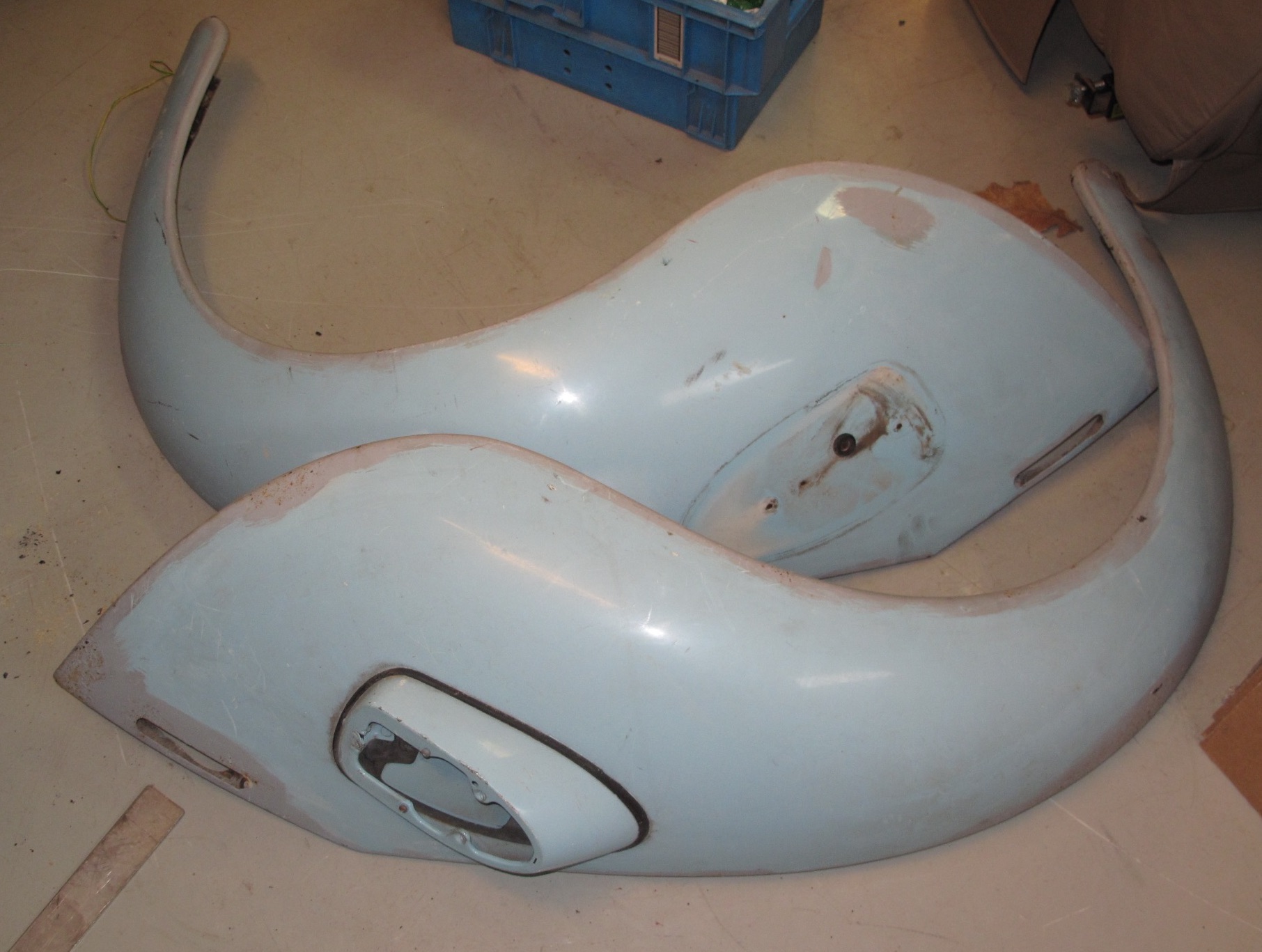 Likaså ett par ändrör, rostfritt stål. Kan följa med skärmarna, då de annars riskerar samma öde.