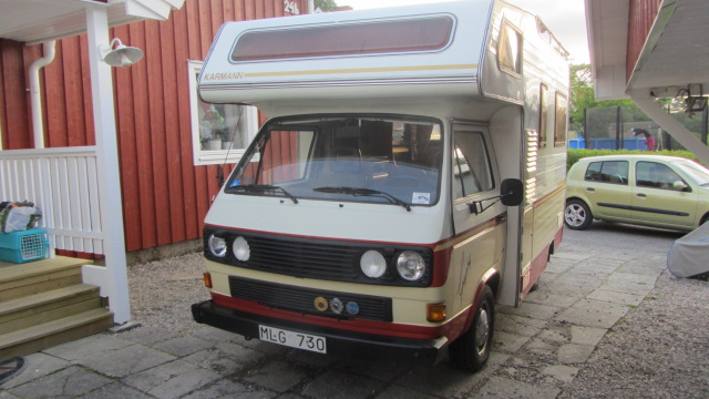 Vattenkyld bensinare med 4 växlad låda. Drar ca 1,2 l/mil och är ingen raket direkt. Dragkrok med hembyggt cykelställ som funkar bra. Sitter en lite markis på den. Portapotti som vi aldrig använt.
