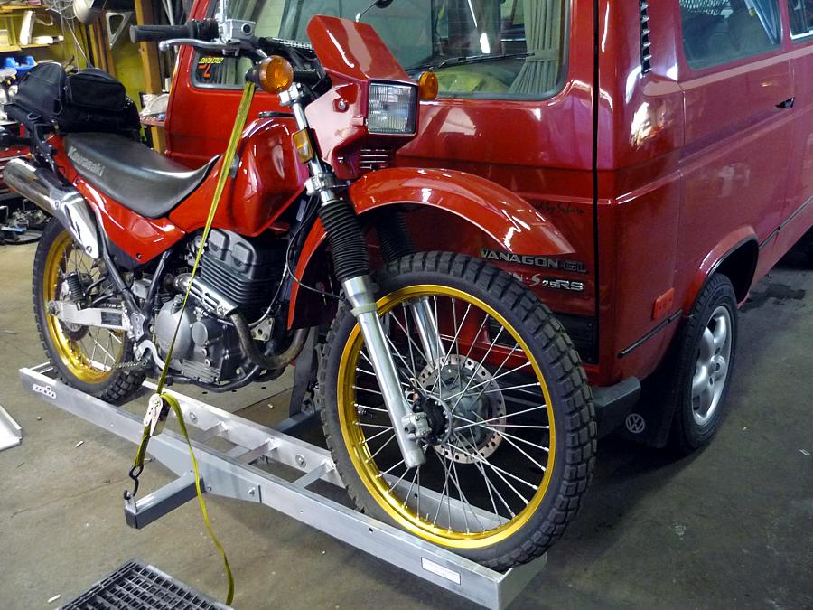 Har tankar på att transportera Vespan bak i bussen. Har en og westfalia dragkrok, robust och rejäl (ej påskruvad just nu) men känns sådär att hänga Vespans 100+ kg på den lilla kulan.