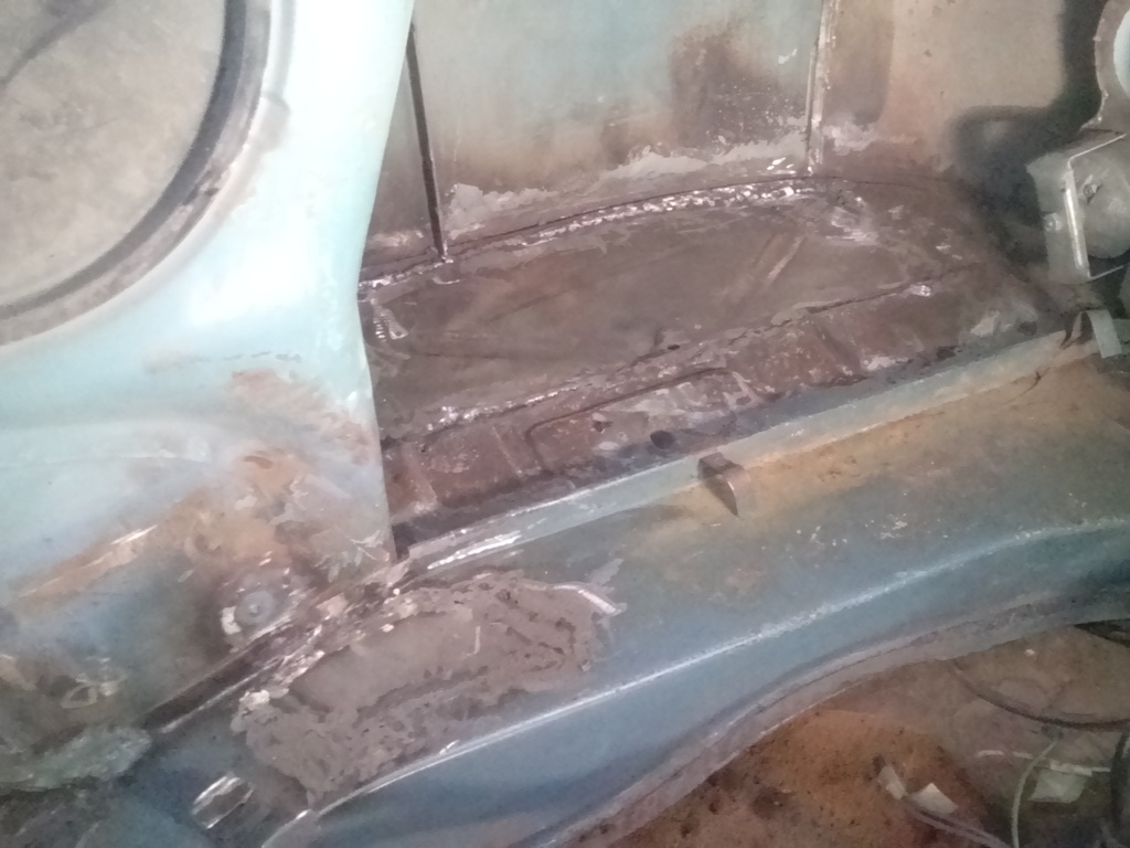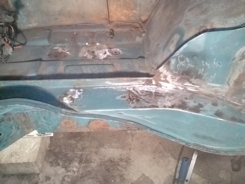 Idag när jag kom hem efter jobbet så slängde jag på mig overallen och kröp in under bussen. Nu har jag kommit så långt att jag anser mig lagat klart rosten på bussen. En milstolpe! ICQ/ag Efter att jobbat mig från fören till aktern så känns det som alla små hål är funna och tilltäppta.