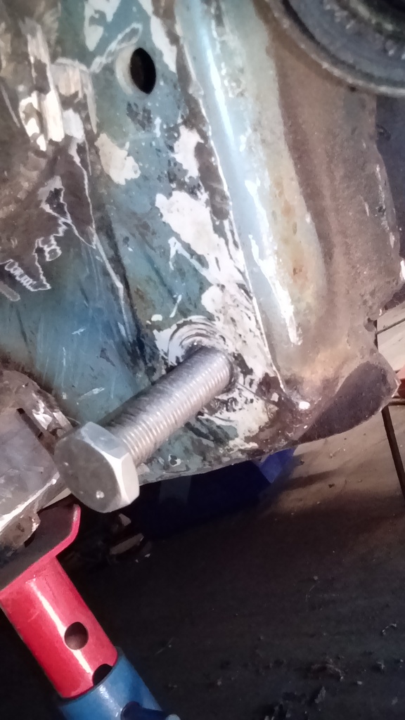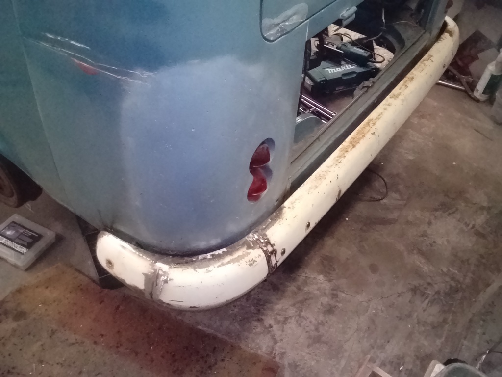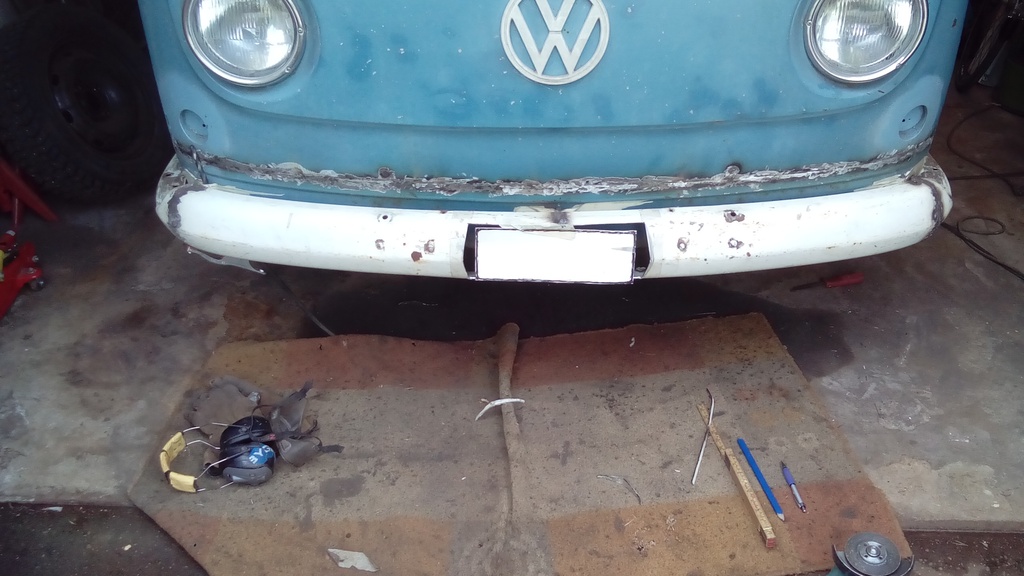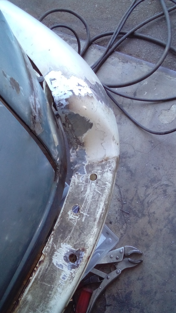 Jag fick en dag i garaget idag och han göra klart andra sidan på kofångaren. Det jag inte han var att svetsa fast kofångaren i sina fyra fästen så jag får bort bultskallarna.