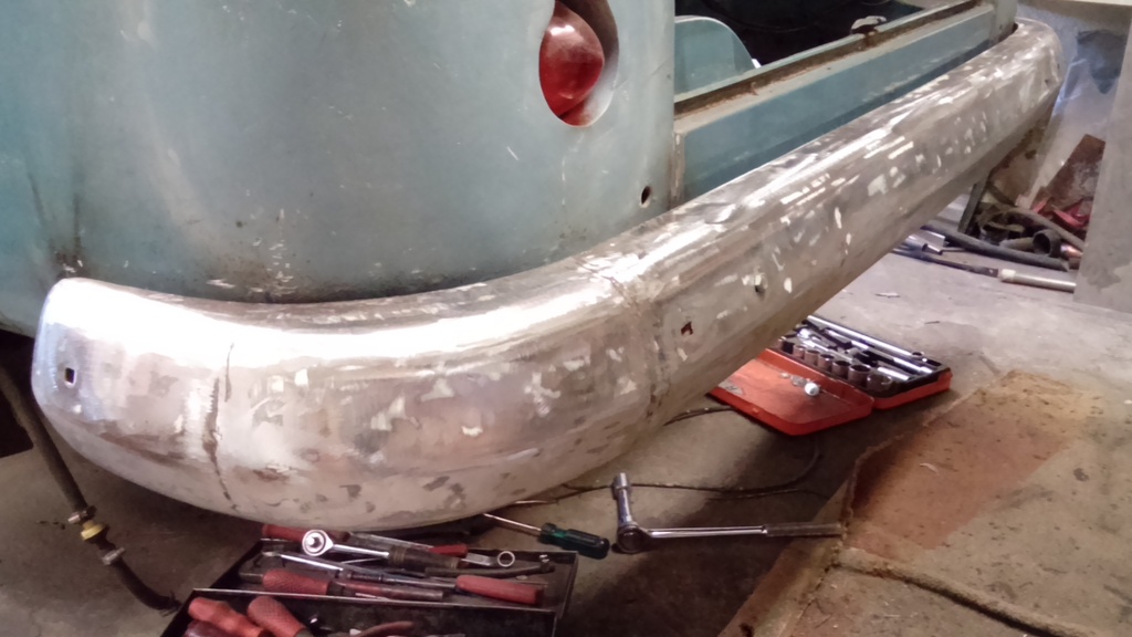 Kofångaren renslipad från färg och på plats.