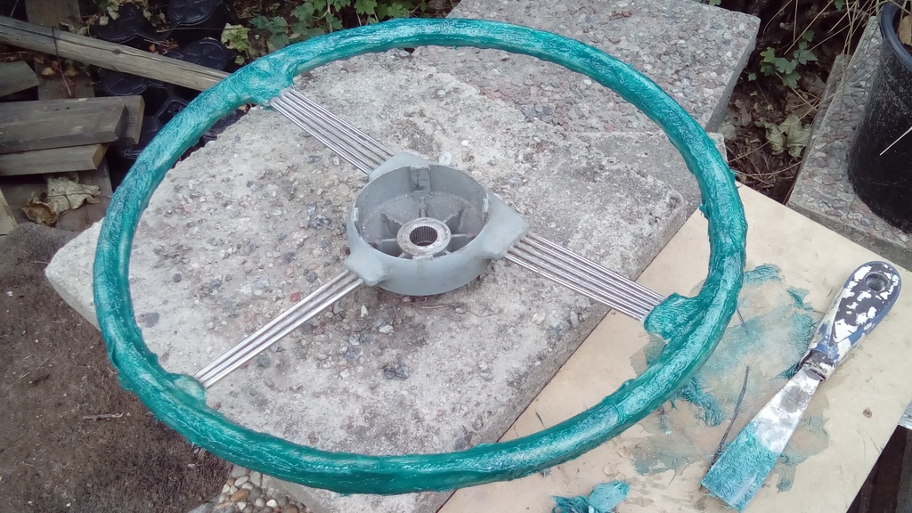 Visste jag inte att det var spackel skulle man kunna tro att ratten var lackad i Glowble (finns den grova flaken fortfarande..?) ICQ/ae