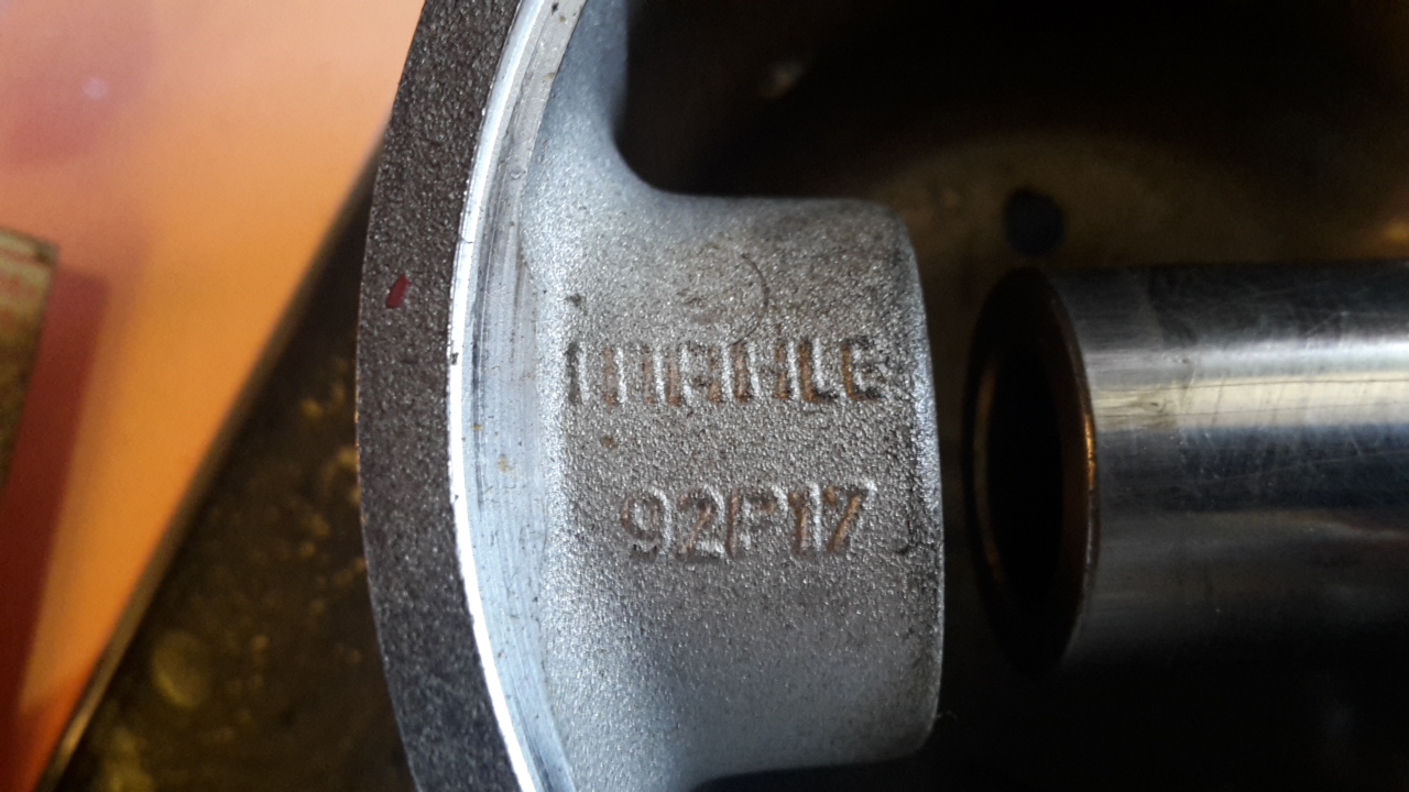 Hej. Jag tror att jag hade världens röta idag. En kollega ringde och sade att hans granne hade två Folkamotorer han ville bli av med. Gratis. Typ 4. Perfekt till min buss med andra ord. När jag kom dit visade det sig att bland grejerna låg det väldigt fina cylindrar (inte nya, eventuellt honade) och flång nya MAHLE-kolvar. Jag behöver nu hjälp med att identifiera dessa då det pratades om att tidigare ägare hade haft planer på turbo.
