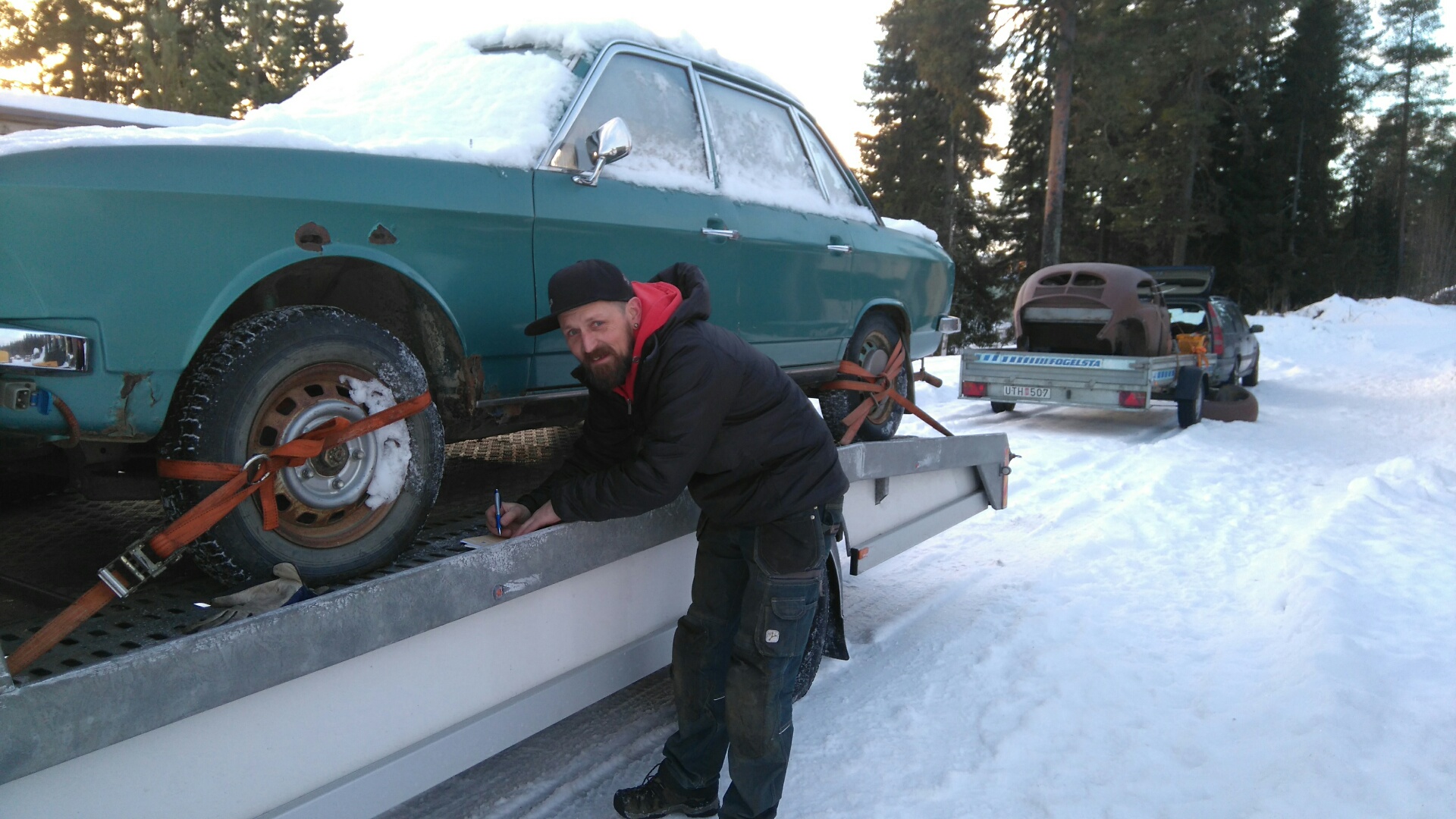 Nä Johan, den karossen har Snäll-Kjell köpt alldeles själv. Vi fick däremot hjälpa till att lyfta av den.  ICQ/ad
