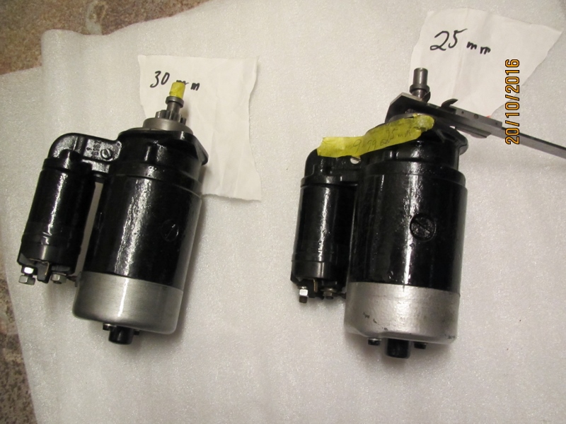 6V startmotorer, den vänstra har en kuggdiameter på 30 mm och den högra 25 mm. Båda har 9 kuggar.