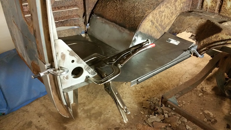 Men nu när jag hade lite halvfärdiga plåtbitar så kunde jag ju inte låta bli att se om det gick att "mocka" upp lite delar mot ramen med hjälp av lite klämmor och sånt, och det verkade ju funka hyffsat.