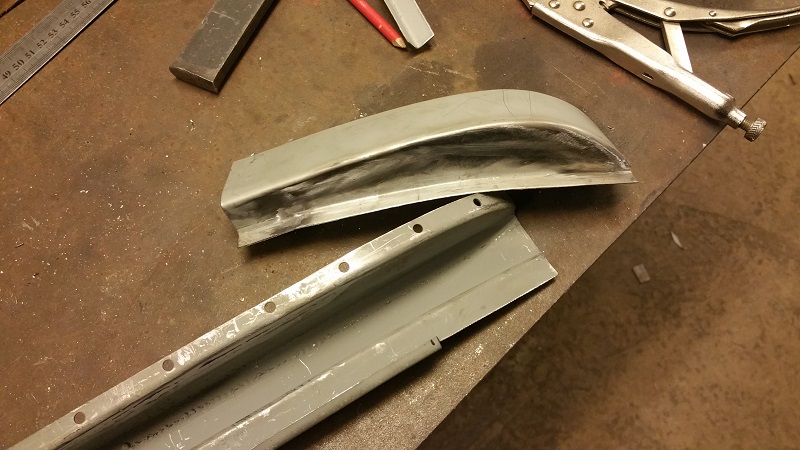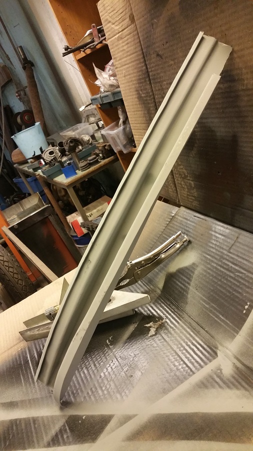 Men har iaf konstaterat att jag fick byta nästan hela den vänstra D-stolpen  Default/hmm  Så det var bara att göra en ny stolpe och sedan anpassa den till den lilla bit frisk originalstolpe som blev kvar efter vinkelslipsrundan i jakt på svetsbart material  ICQ/ae