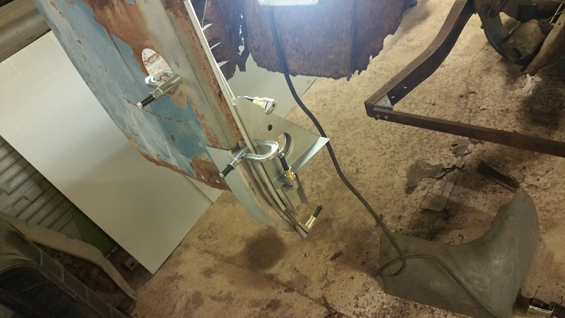 Med det värsta bortkapat som satt ivägen så gick det att klämma upp delarna med lite klämmor mot karossen istället ICQ/ab