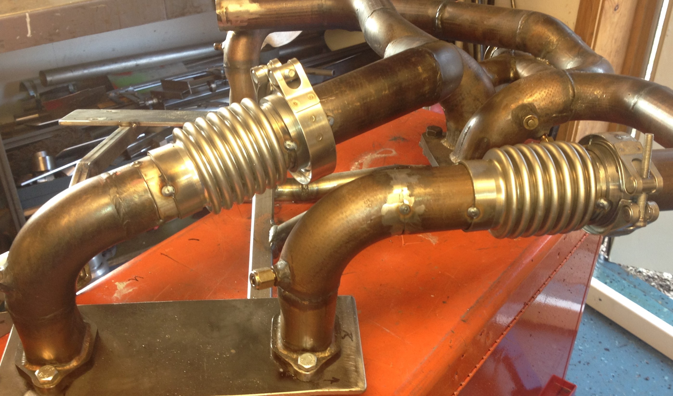 Staga turbon kan vara bra om den sitter långt bort. Motorn rör sig och turbon borde följa med alt stumma motorfästen och bälgar likt det jag köpte av KL Racing. Det går rör i rör inuti bälgen likt Saabs V6 turbo på 2.7L. Scania V-klämmor för lätt demontering av topparna(typ4). Byggde en turbohylla bakom motorn.Allting i rostfritt så det rör sig lite.....