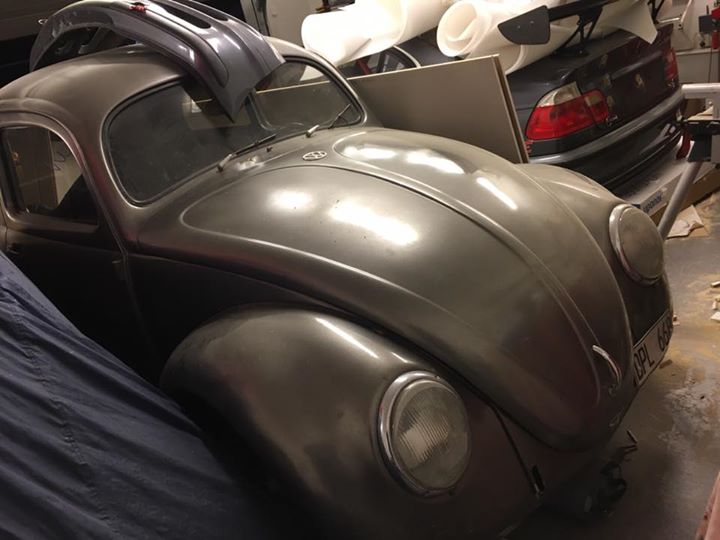 Registrerad som 1956, original med papper för "nya" registret, senast körd på gatan 2003. Stolar, baksoffa innertak och dörrpaneler original men omklädda med överdragsplysch. Tittade under klädseln på förarstolan och såg rätt bra ut med det ursprungliga pjamasrandiga tyget.