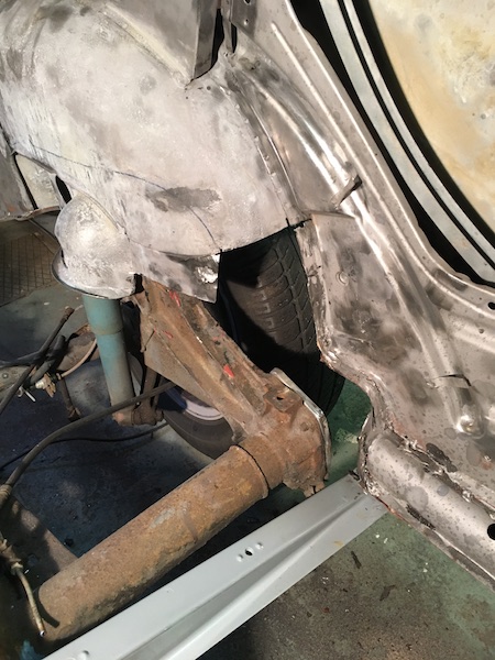 Började banka lite plåt för laga i hjulhuset som var lite tråkigt lagat och saknade lite frisk plåt.