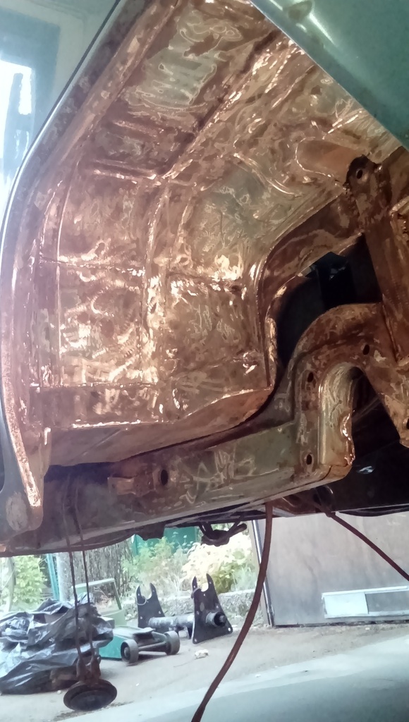 Nu är det dax för en liten uppdatering. Det händer saker i garaget men det går inte så fort som jag hoppas. Jag kanske är för petig? Default/hmm Jag har inte haft möjlighet att blästra bussen, vilket naturligtvis hade varit det bästa, så jag fick nöja mig med det näst bästa vilket var att ligga underbussen med vinkelslip och borrmaskin och borsta och slipa rent plåten från ytrost och gammalt bös. Det dök upp något litet hål till som jag hade missat så nu kan jag med gott samvete säga att bussen är fri från rost. ICQ/ab