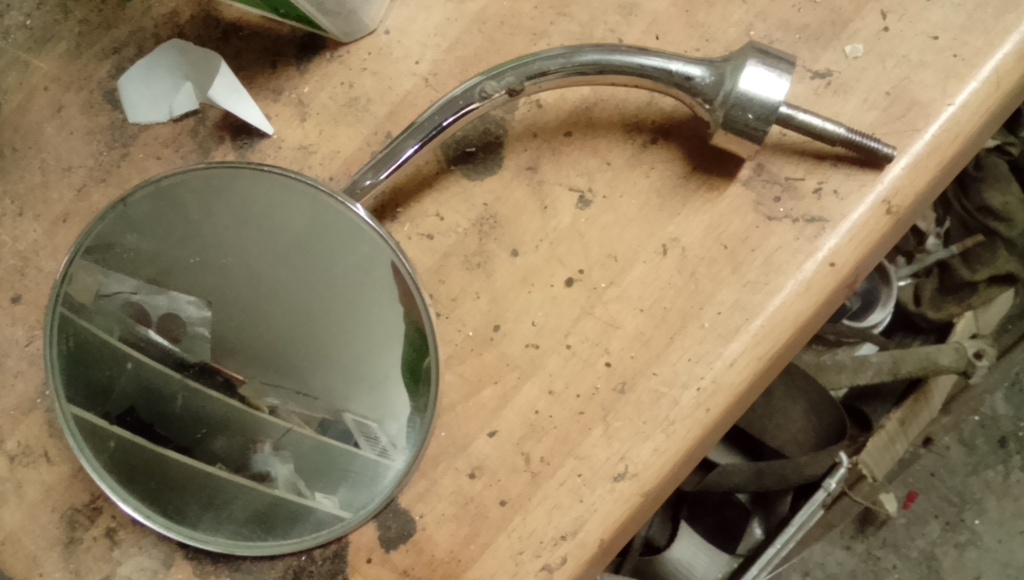 Så här såg den nya backspegeln ut, lite avskalad och tappen gängad.