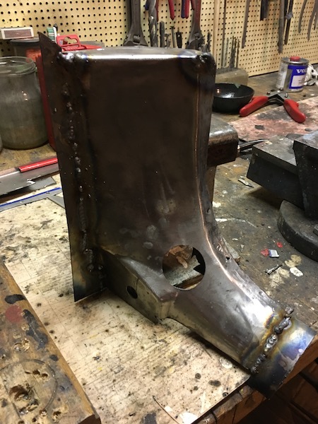 Gjort en V-förstärkning och svetsat fast i den, nu ska bara hålen göras lite större innan den svetsas fast.