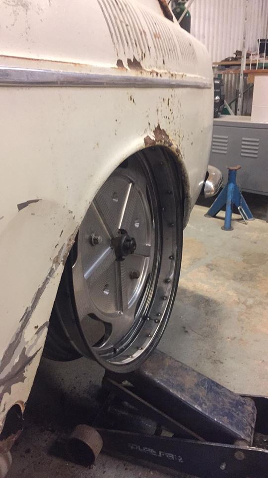 Hängde dit wide 5 truman som passade rakt på, bara bort med orginalet o hjulhubben.