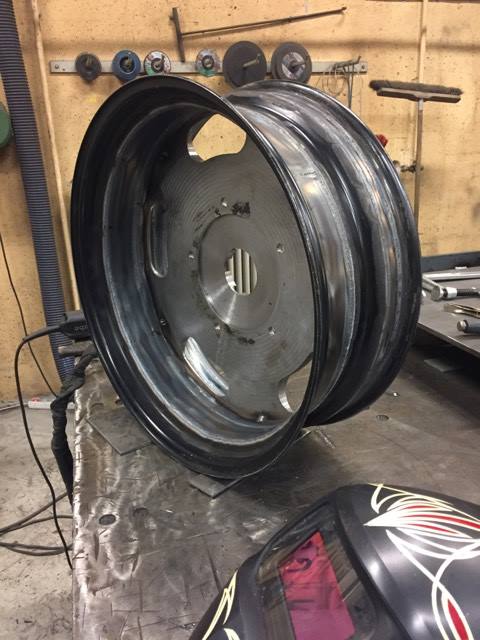 Ah i kväll fick jag en lucka mellan variant o grenrörsbygge o allt annat, så svetsade enna bakfälgen.