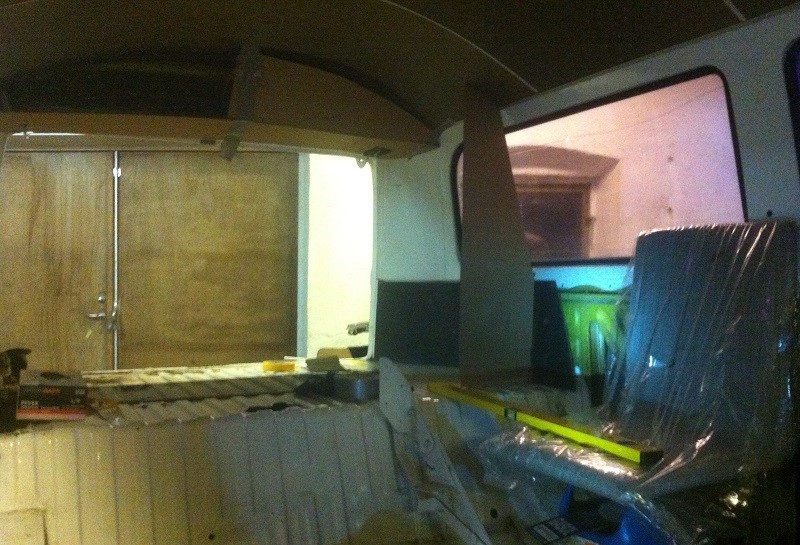 Isolering sitter nu på plats på drygt hälften av ytorna. Kul att snart kunna montera sidostyckena med ny vinyl.