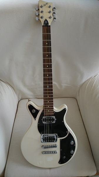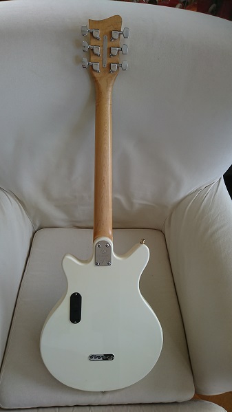 Cool elgura som skickades med vid köp av Volkswagen bilar i USA, finns reklamfilm där Slash ur Guns and Roses spelar på en. Gitarren är i fint skick, kommer nysträngad (ej på bilden) i original konstläder fodral. Skön att spela på, snygg att se på, bland annat med VW-loggan i pärlemorinlägg på greppbrädan...