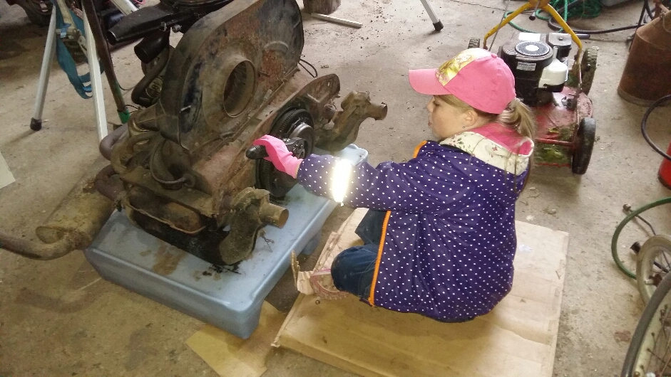 Fick ju hjälp av dottern så växellåda på plats.