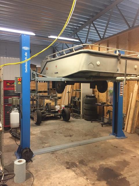 höjd, ny axel tillverkades o hjulnav från saab 95, o givetvis stora hjul, 20" blir de. men vist vill vi se bilder!