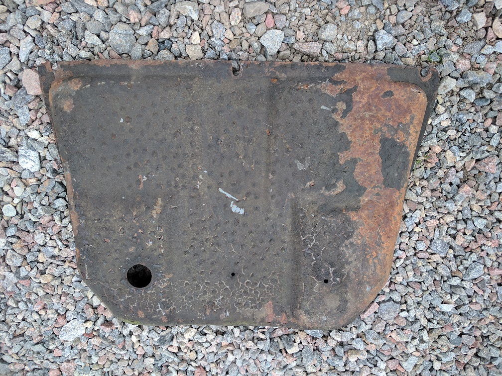 Har kvar en sådan plåt som sitter under, längst fram på en early bay(även late?). Rost finns men den är inte alls genomrostad, bara ful.