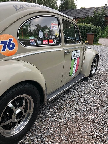 - Stötfångarna är bortplockade och ersatta med T-bars från Classic VW Up North.