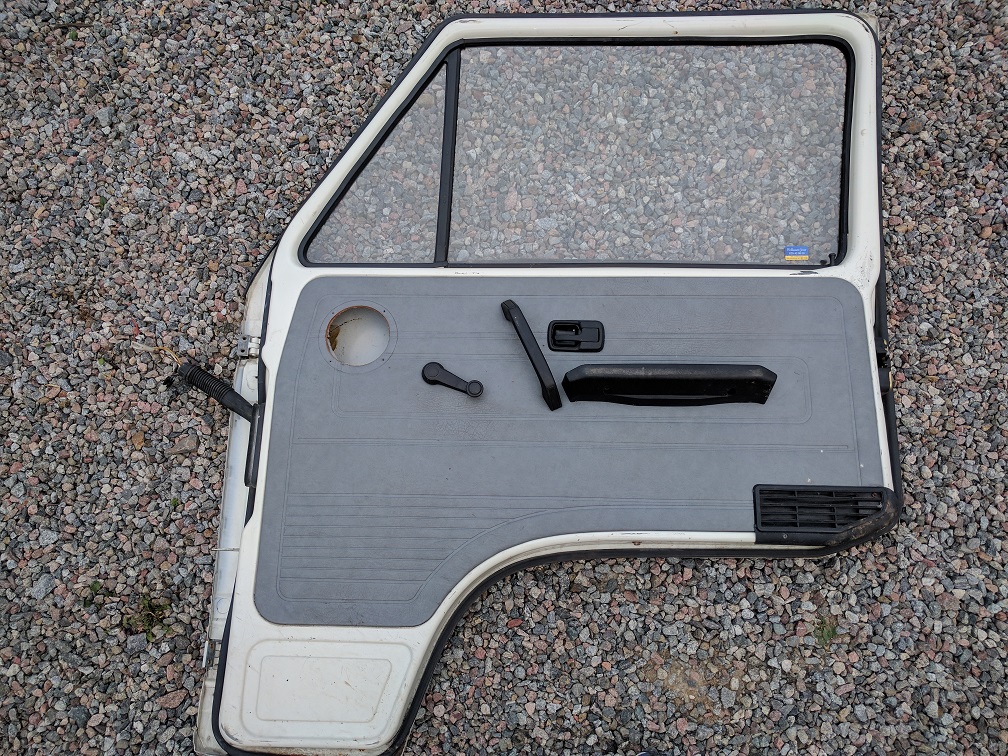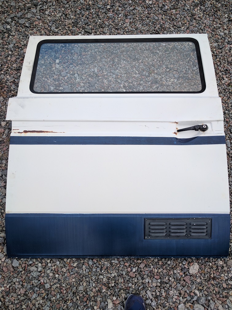 - Skjutdörr i sämre skick. Bucklad och dörrhantag trasig men mekanism helt OK: Bortskänkes