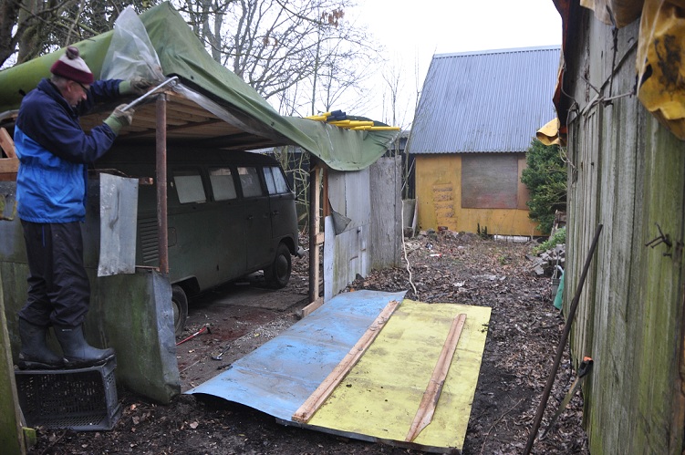 Efter mycket slit och rivande i håret kom vi överens med vår markägaren att vi river huset så pass så vi lättast möjligt får ut bussen.