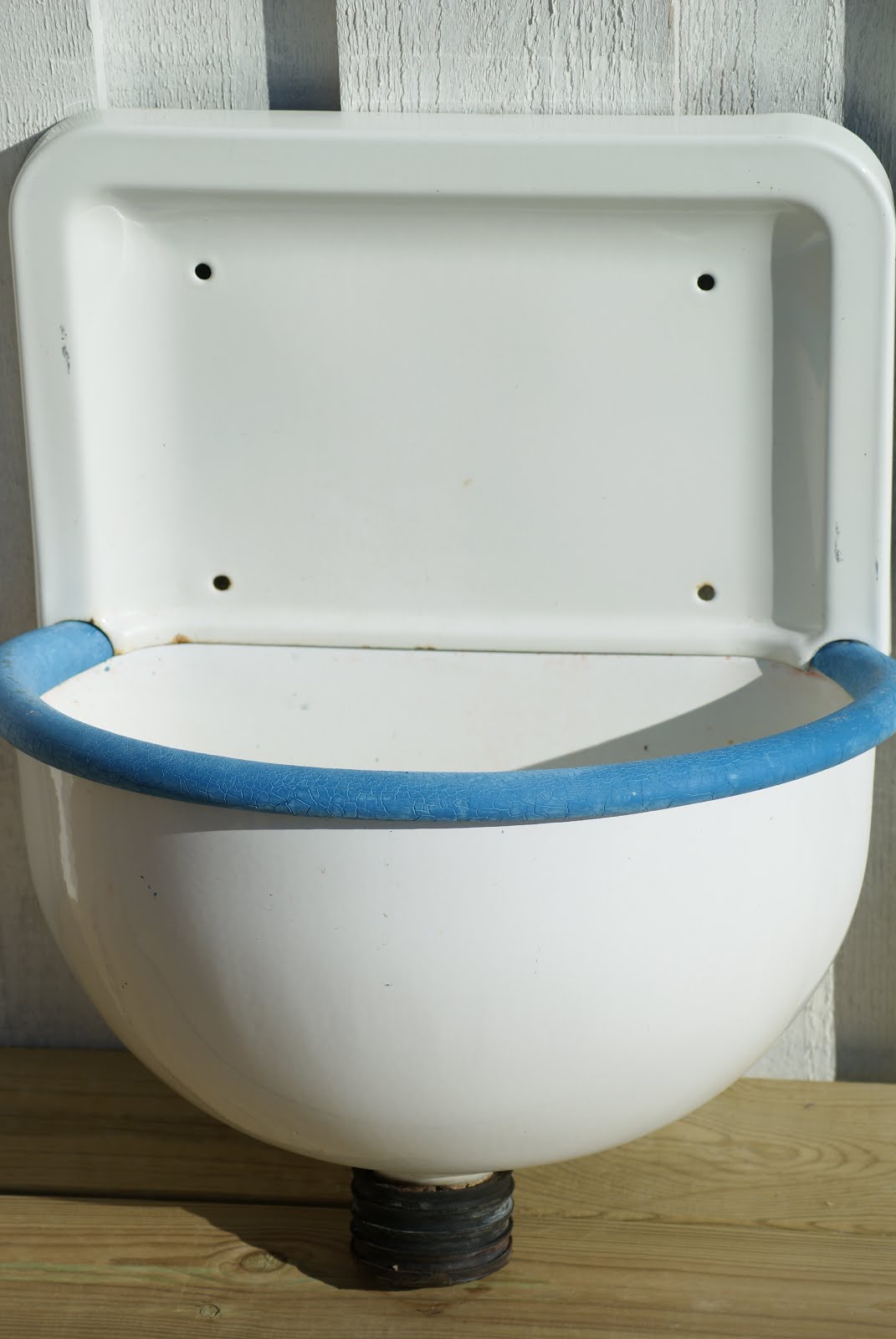 Jag försöker hjälpa min gamla mor att hitta en sån här gammal utslagsvask med blå kant (mkt viktigt enligt mor