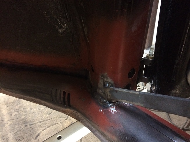 Tyvärr va stötdämpartornen avkapade sen tidigare, för att kunna åka riktigt lågt. Så nya sådana fick göras efter egen design enligt bild. Går även stag mellan dämparna fästena över vxl som förstärkning i sidled.