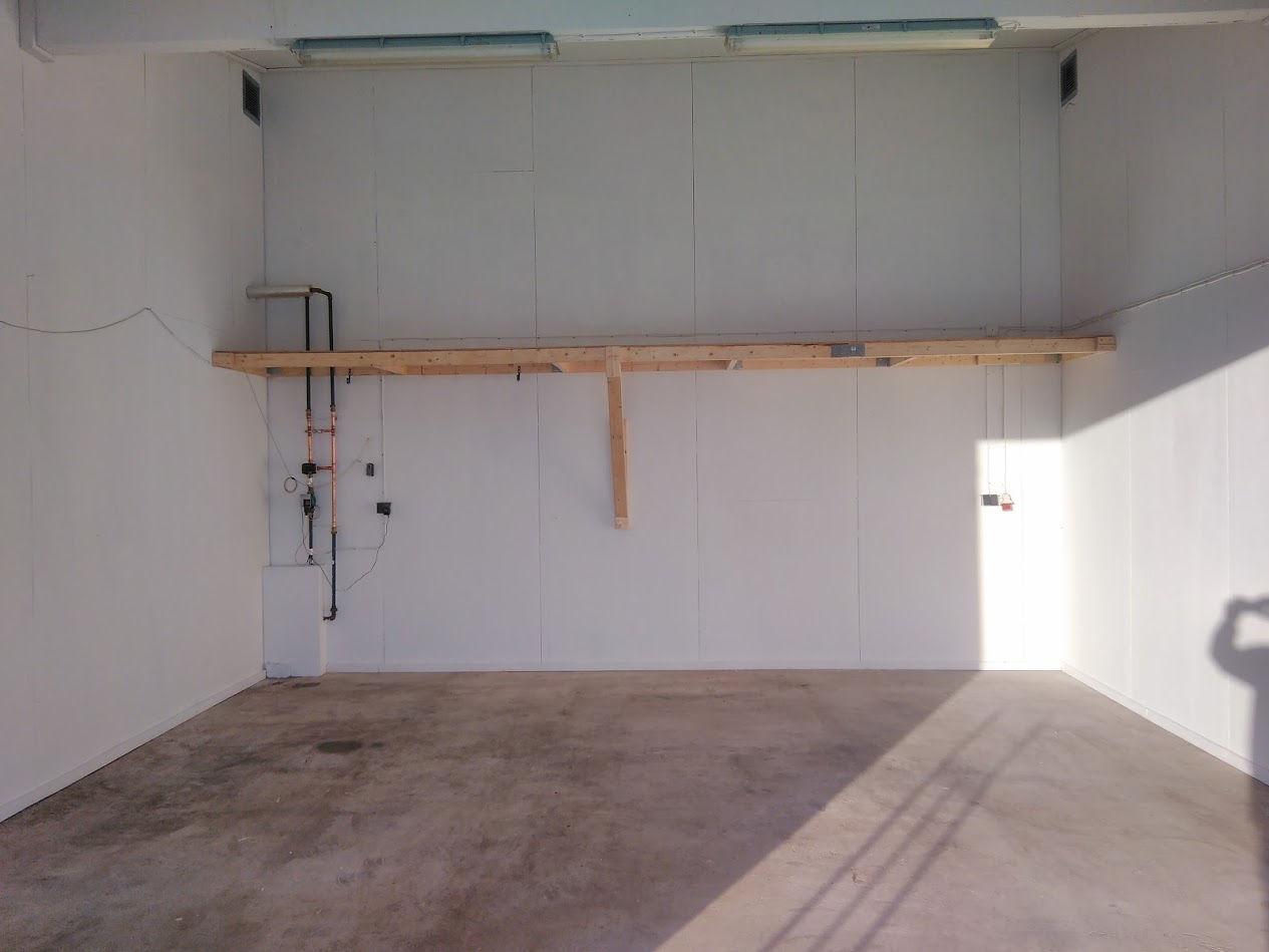 har inte hunnit undersöka vad det är som dom två lysrören sitter fast i men det är ju någon slags balk där under o sen kanske man kan göra några stag snett ner från väggen men vi vet ej vad som finns i väggen,kollade på limträbalkar i dag fanns 6m långa (o jag har 6,5m mellan väggarna  ICQ/ad )i olika storlekar ca 150 kr/m ,undrar hur kraftiga man behöver?