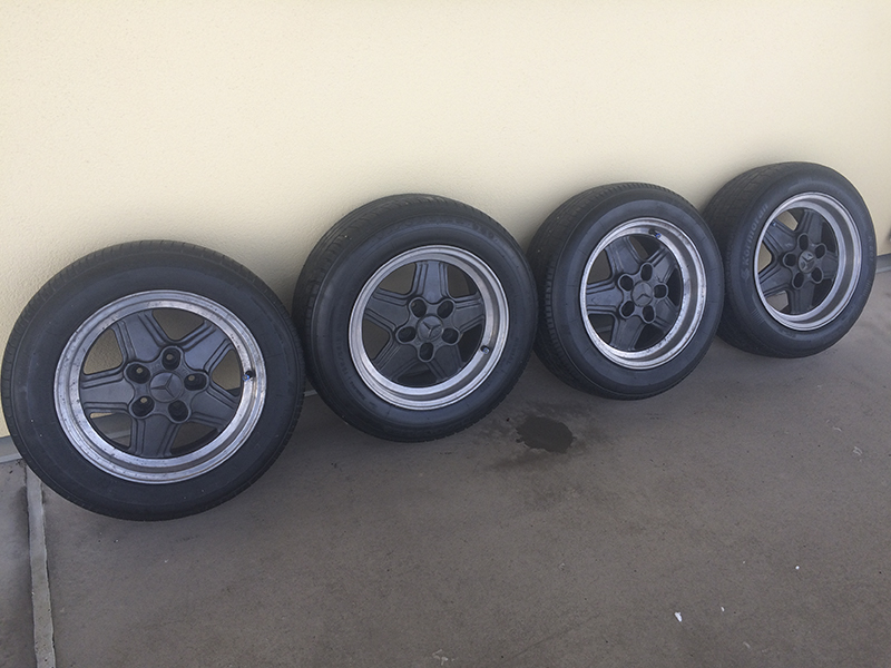 Ena fälgen(längst till vänster) har lite oxid på sig. Jag har inte varit på o polerat, så du kan säkerligen få den mycket finare med lite tlc.