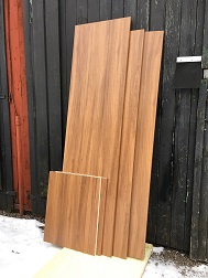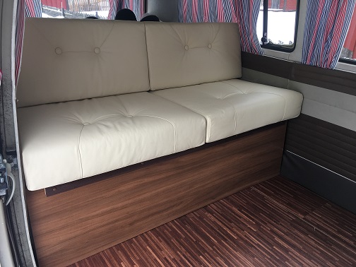 Sofforna är tillsågade i folieklädd plywood av husvagnskvalitet och innehåller front, sits, rygg samt skivmaterial till två gavlar.