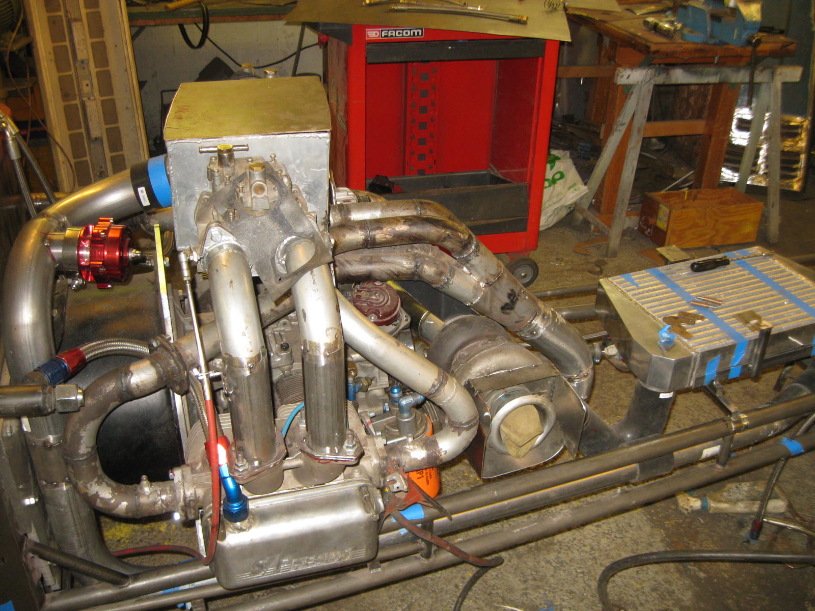 första steget till något att åka med nästa år har börjat,ner från hyllorna har vi plockat alla delar som satt på turbo motorn i jonas ghia turbo,förgasare,soppa prylar m.m bara att fixa till burken  lite insugs rör tillv montera turbon så blir det åka av,motorn får en 84 vev 5,7 stakar o 94 borr,dom här delarna i ghian med 2176a gav ca 400hk i dragstern är det typ låga 8or,bakaxeln får ett byte till 4.10 utväxl så varvar den ca 7600 över mål
