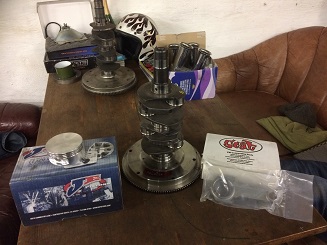 Wedgemated med ett lättat svänghjul, typ 4 (60mm) ramjournal i mitten och balanserat ihop med en Kennedy steg1 tryckplatta.