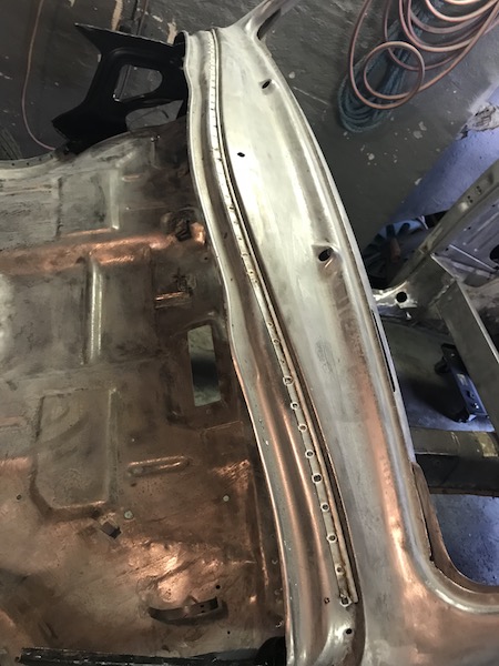 Idag tog jag lite garagetid, skruvade fast bottenplattan mot karossen och fäste golvhalvorna på ett par ställe. Får se när andan faller på att ta resterande 90 punkter. Passade på att svetsa igen dom retfulla sprickorna som funnits efter dörren och i instrumentpanelen där någon sågat upp för att få plats med en större radio.