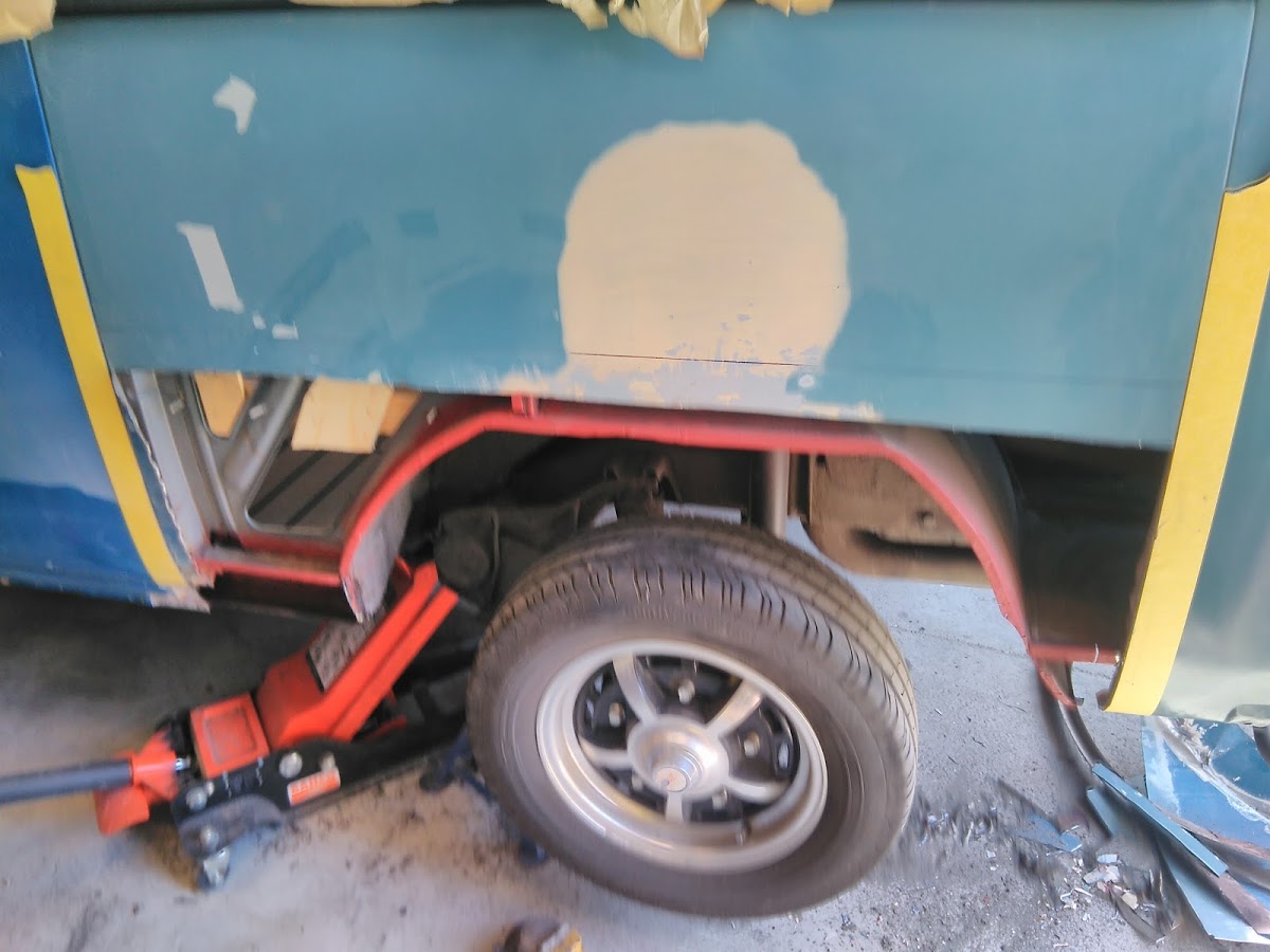mellan skruvandet på dragstern så hoppar jag in med lite annat fix som byte av 2st bak skärmar på en buss ,någon har förut monterat runda hjulhus på den vid rost lagning ,jag fick nu tillfälle att prova punkt svets maskinen jag köpte o det blev bra men den är lite tung o klumpig