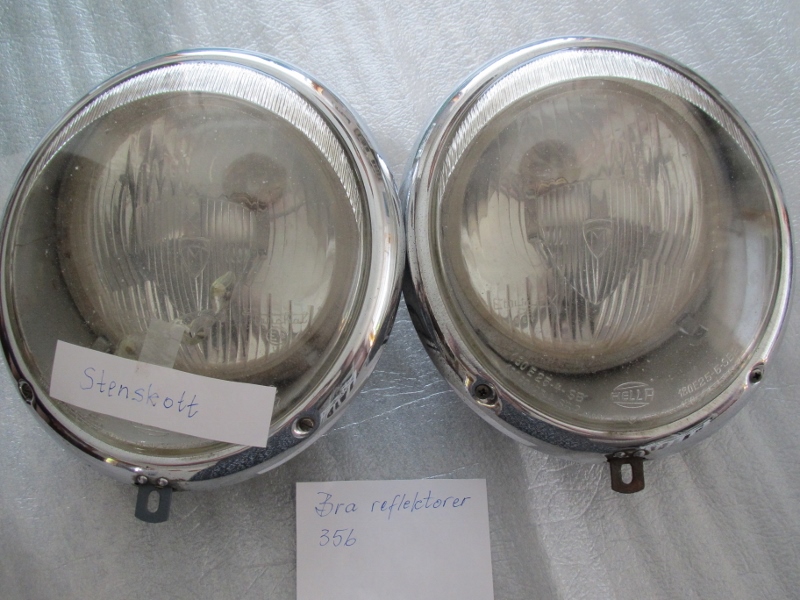 Original till 50-talare. Vänster Hella glas skadat genom stenskott. Marchal reflektorer är mycket bra.