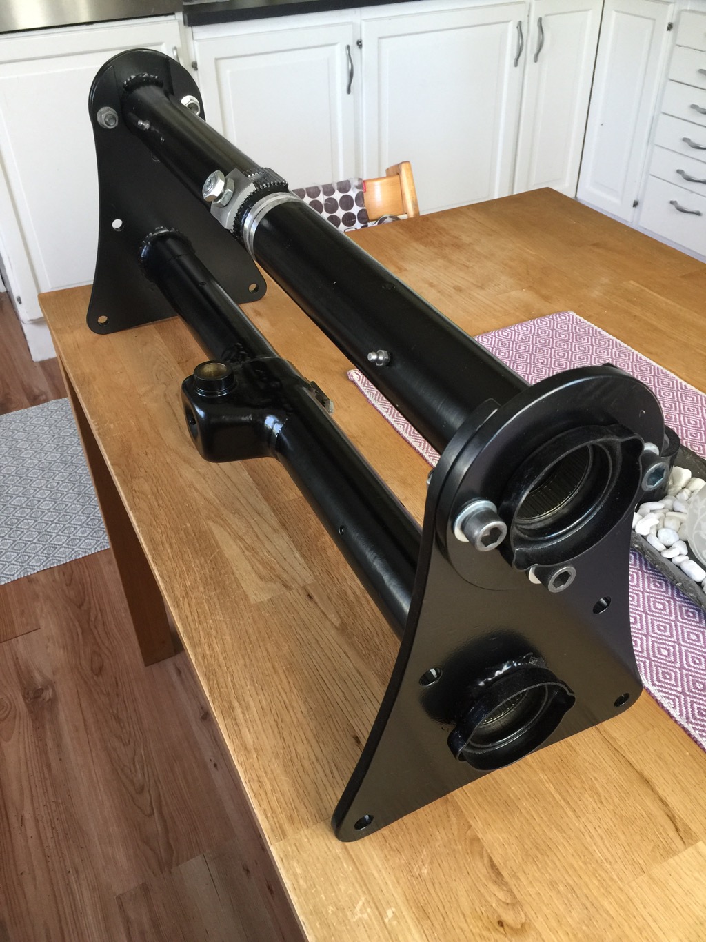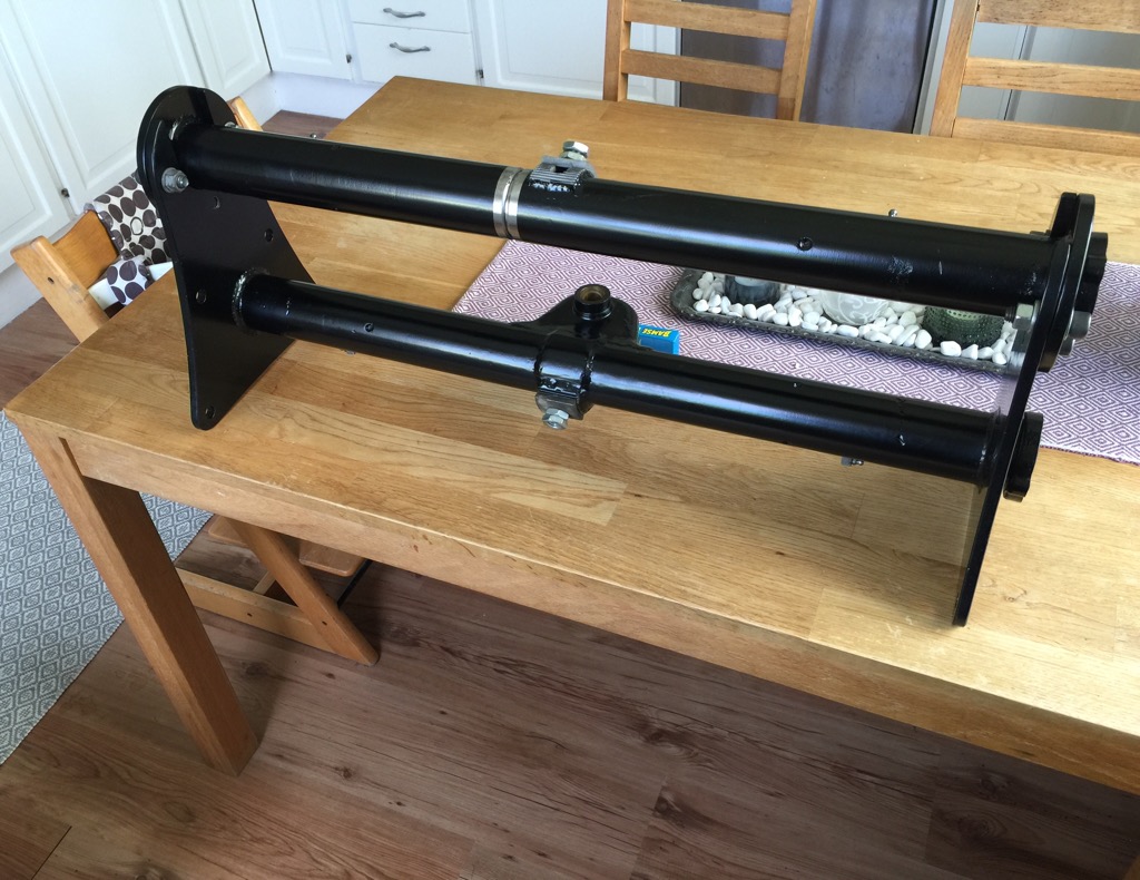 Övre röret är delbart med en hylsa där det är omålat, om man vill kan man punktsvetsa ihop där efter monteringen.