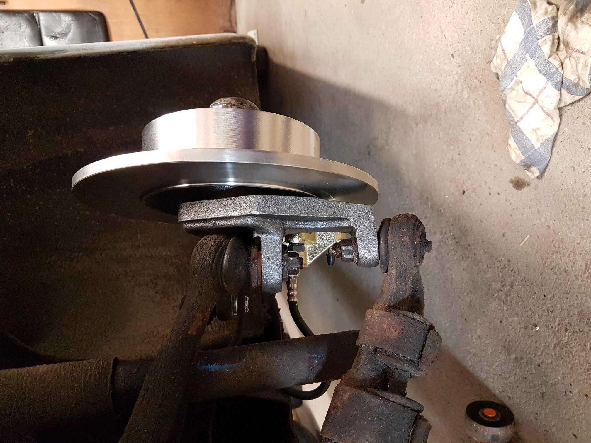 Dock så är mina däck (Vredstein sprint 165-80-15) aningen för höga tillsammans med mina 5,5 tums fälgar så jag har fått modifiera övre stötdämparfästet så att genomslagsgummit svarar tidigare vid nedfjädring.