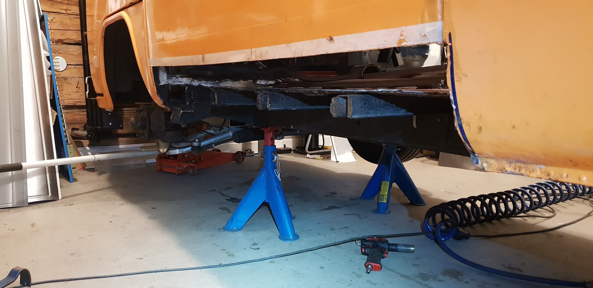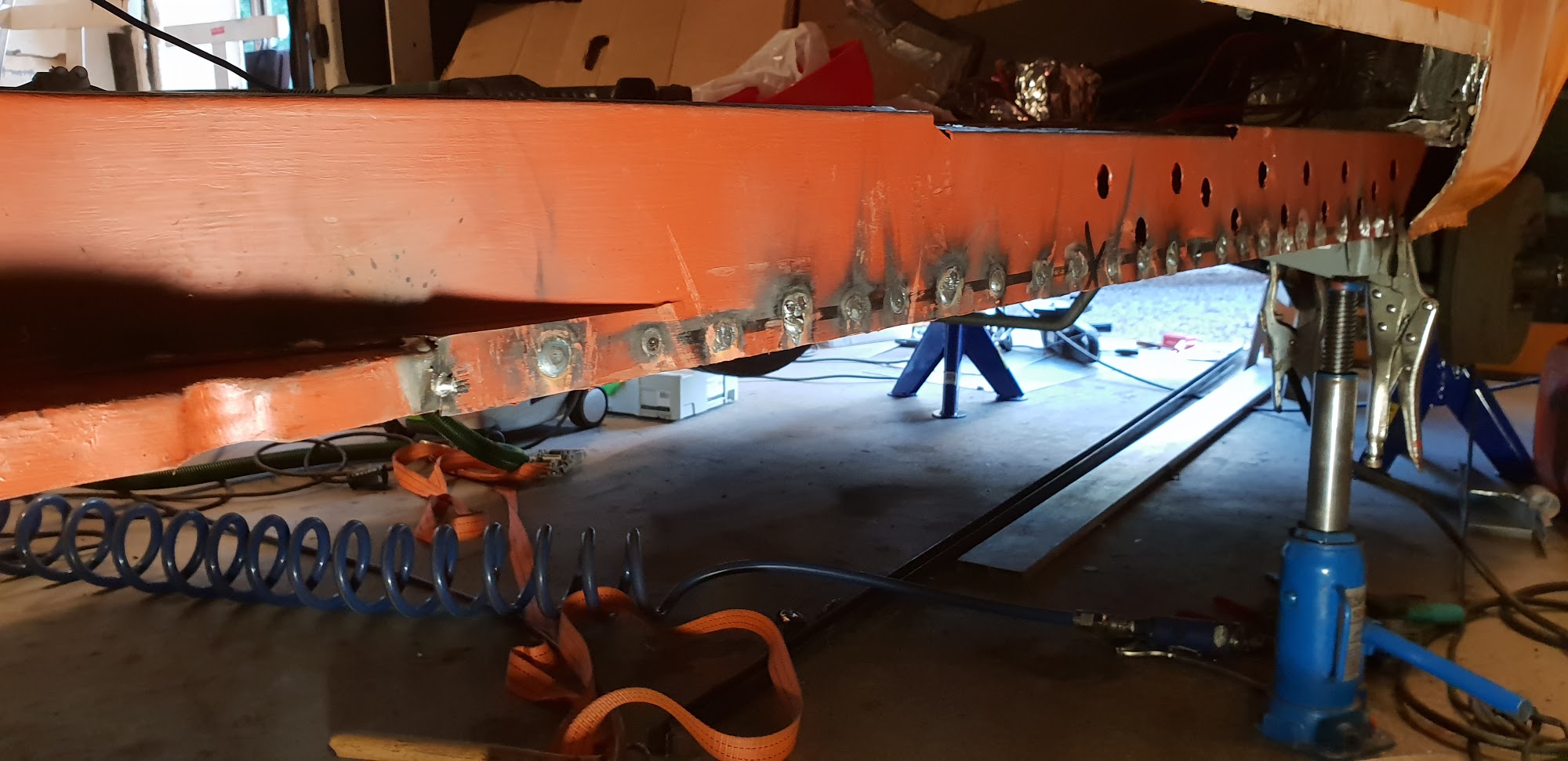 Om man måste byta mer, som i Rickards fall så blir skarven inte lika lätt. Men det är ju en del jobb kvar innan det momentet kommer så då har kanske vanan med svetsen upparbetas. Det ska ju bytas golv, utriggare och stolpar innan tröskeln kan monteras.