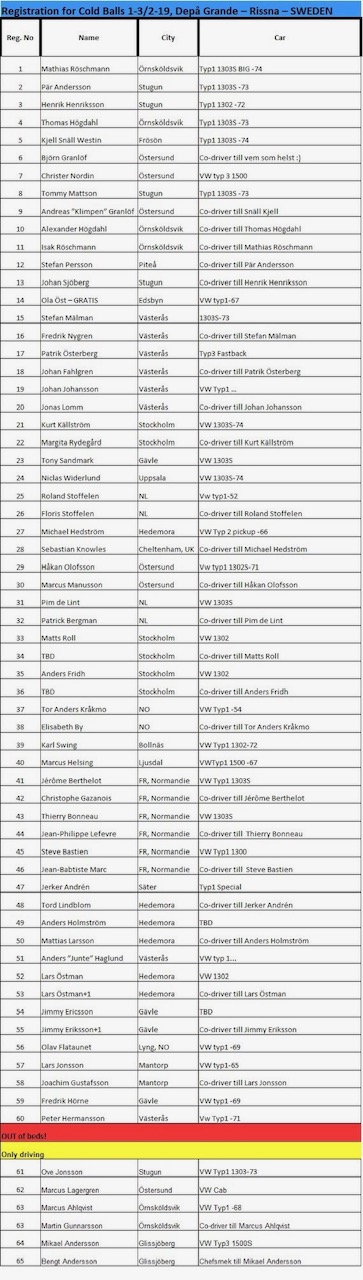 Öppet för alla Volkswagen typ 1,2,3 och 4 (inkl. Buggy/kitcar). Alternativ motor accepteras.