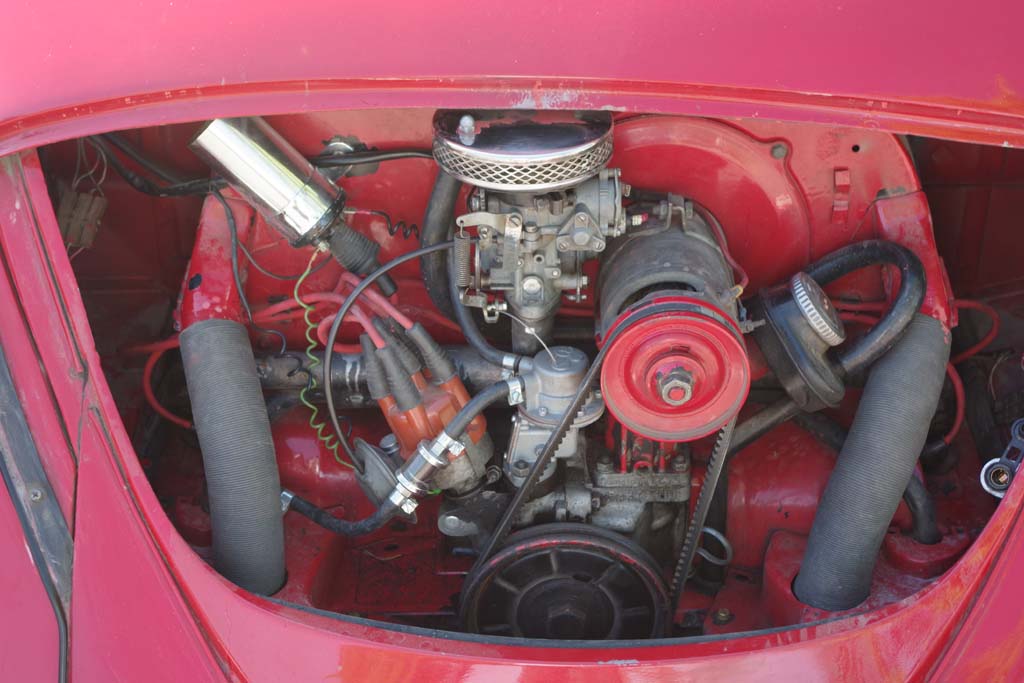 Motorn, som är en enkelports 1300, går ok men fördelardrevet står fel, bensinpumpsbakeliten är av och stötstångsrören läcker olja.