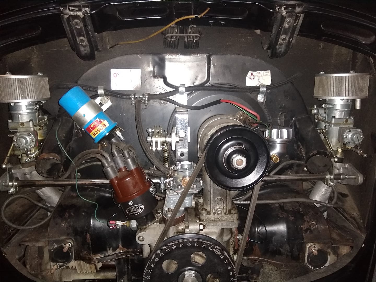 Då så pumpen ditsatt, Abarth-systemet avplockat och remskivan på plats. Den fick koka en stund i hett vatten, sedan slank den på. Nu stundar hummern!