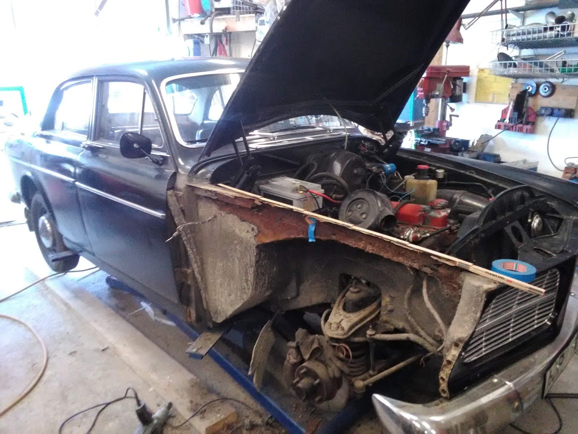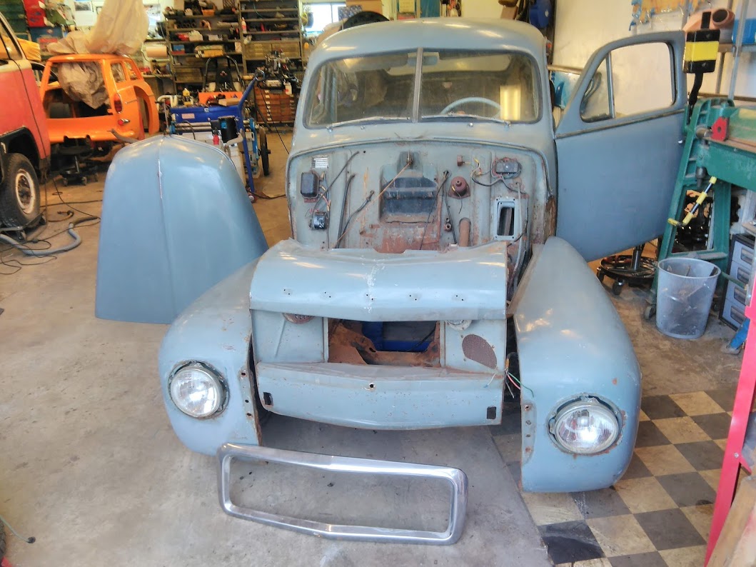 vad händer i verkstan jo efter att jag blev klar med rosten på min PV 54 som nu är till salu! tänkte jag kasta mig över peters buss + dragstern men då smet denna bil in när jag öppnade portarna garage grannens nya sommar åk som ska till lack o visade sig ha en del rost o gamla krock skador ,så det blev ändrade planer igen , det kostar när man har racer bil som man vill leka med under sommaren