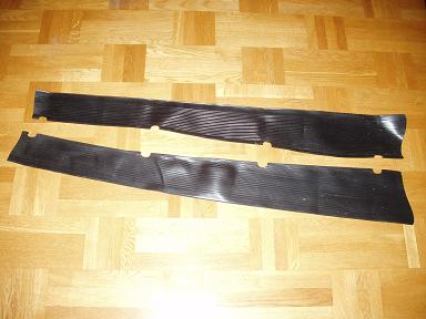 Ett par nya fotstegsmattor till VW Typ 1, höger är troligen NOS original, vänster är pirat. 200:-/paret + ev frakt.
