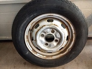 4st 4,5 15" 4-håls fälgar med dåliga däck 600:-
