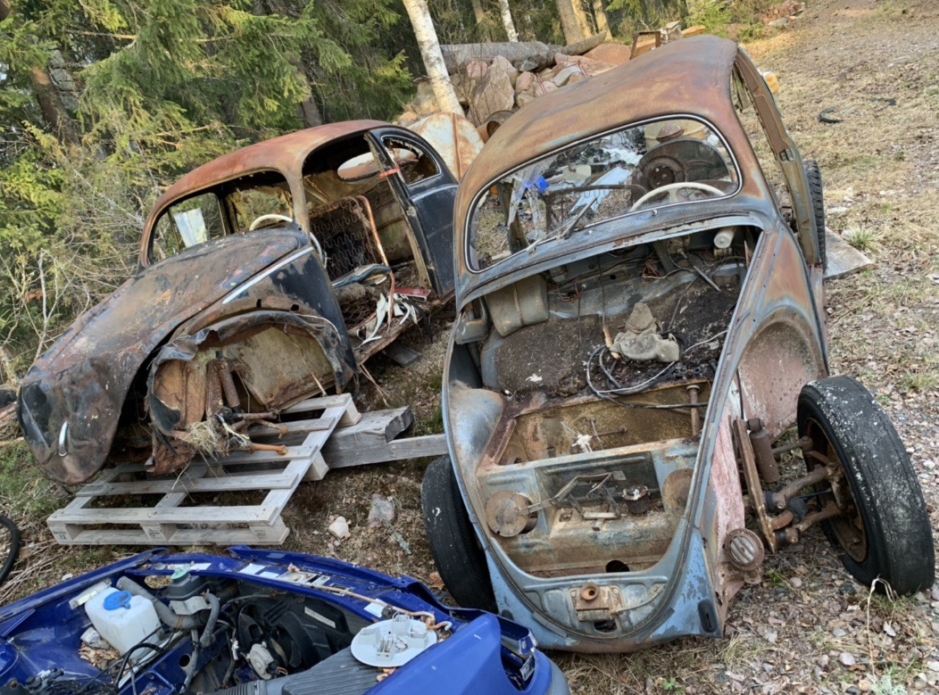 Hej. Jag tänkte kolla om det finns intresse att byta en split bubbla kaross mot två oval skogsvrak. En med halv kaross. Och en bulig och rostig 1969? Info. Den svarta med rutan kvar är en 1953 december om jag inte minns fel. Har båda dörrarna till den svarta. Och den halva är en 1955 tror februari.jag behåller helt fälgarna men det för bestämmas vid överrenskommelse. Inga papper på någon av dom. 69an finns regbevis och kvar i registret. Rostig i bak båda sidor och bakom förardörren på karossen. Bulig tyvärr.