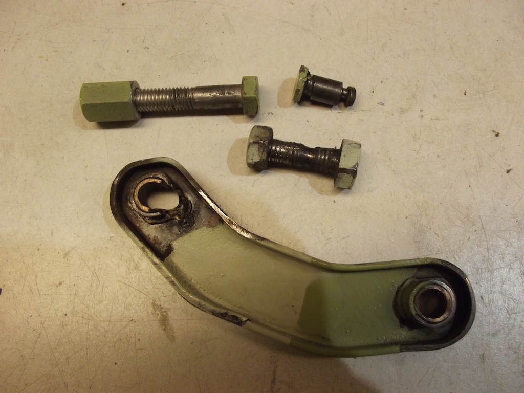 Länkarna är lagrade med en 8.5mm axel (skumt mått) och bronsbussning. Jag byggde nåt som funktionsmässigt är som original men infästningen inte helt original. Det blev tre svarvade axlar, utgick från M10 skruvar som svarvades ner.